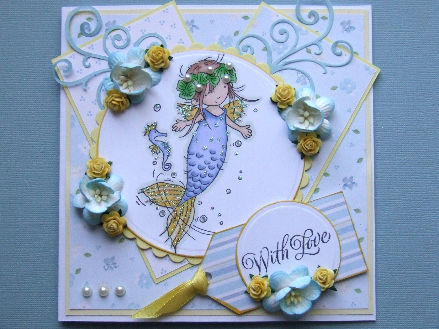 Hi Michelle, love the swirls and pearls on your card. Your little mermaid look fab all sparkly. I can see why she's a favourite.
